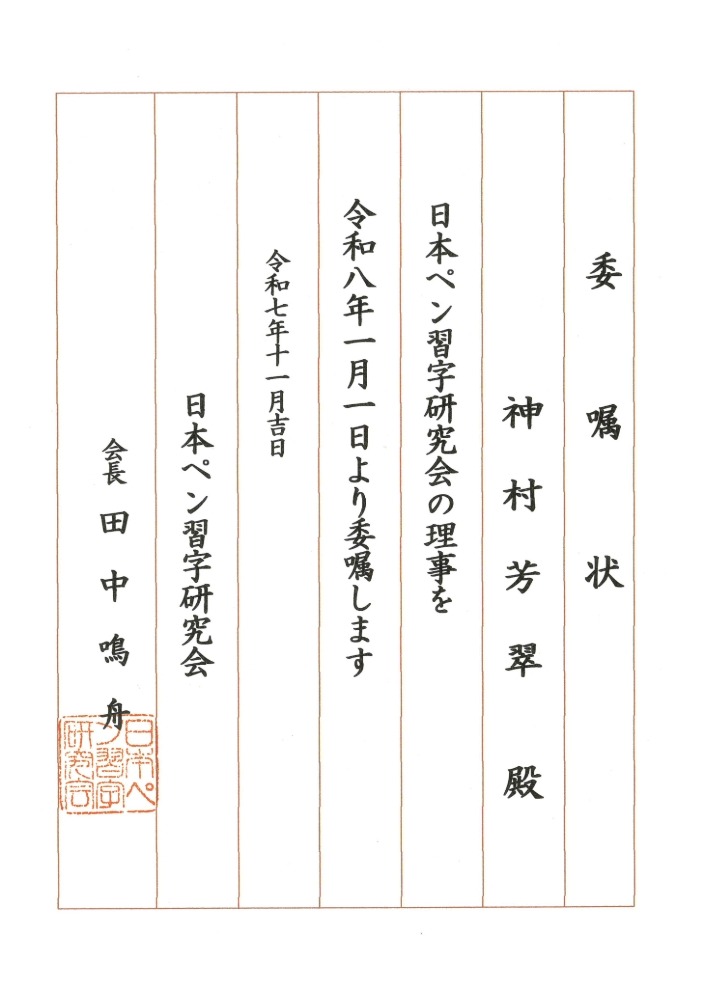 このたび、2026年1月1日より、日本ペン習字研究会理事に就任することとなりました。
